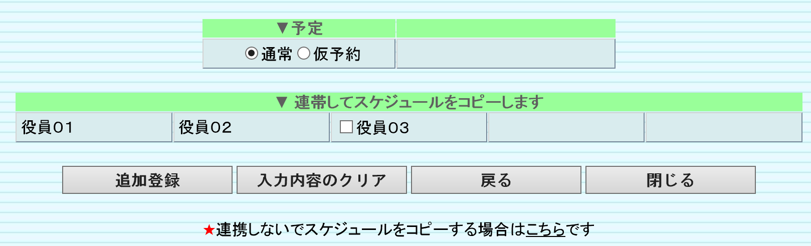 また複数役員が登録されているスケジュールに、役員を仮予約として